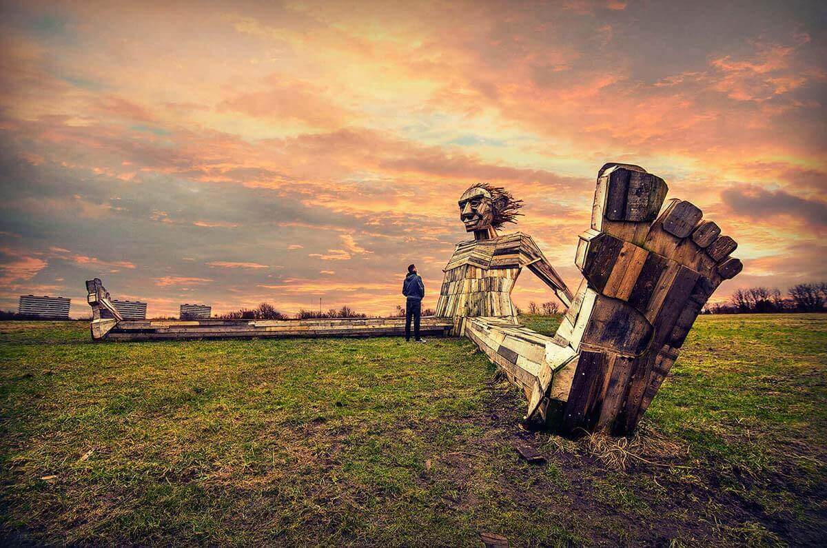 Sechs von ihnen findet man bei genauerer Suche und keiner gleicht dem anderen. Dabei erfüllt ein Teil von ihnen sogar eine nützliche Funktion. Thomas Dambo heißt der Mann, der den Riesen vor einigen Jahren Leben einhauchte. Lediglich altes und recyceltes Holz benutzte er, um Gestalten zu schaffen, die vollkommen an ihre Umgebung angepasst und in diese integriert sind. Während der eine Gigant auf einer großen Lichtung die Beine ausstreckt, stützt sich der nächste im dichten Nadelwald an den Baumstämmen ab. Thomas Dambo wollte jedoch allen Geschöpfen eine Bedeutung und einen Nutzen verleihen. Sie zeigen unseren möglichen Einklang mit der Natur, verletzliche Wesen, die möglichst abseits von der Zivilisation leben und sich aber über jeden neugierigen und friedlichen Gast freuen.
